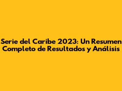 La Serie del Caribe 2023 fue un torneo emocionante y lleno de momentos inolvidables. Los equipos participantes demostraron su talento y pasión por el béisbol, y los fanáticos disfrutaron de un evento espectacular. En resumen, el torneo fue un éxito rotundo.