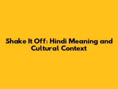 Shake It Off: Hindi Meaning And Cultural Context