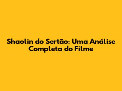 Shaolin Do Sertão: Uma Jornada Cinematográfica Completa