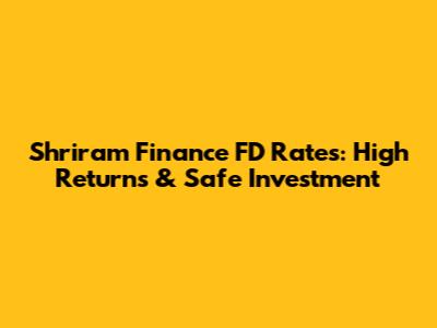 Shriram Finance FD Rates: High Returns & Safe Investment