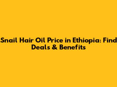 Snail Hair Oil Price In Ethiopia: Find Deals & Benefits
