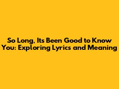 First things first, let's get those lyrics down. The core message of "So Long, It's Been Good to Know You" is, undeniably, a goodbye song. It's about acknowledging the end of a relationship, a journey, or a phase of life while embracing the memories and experiences shared. The simplicity of the lyrics is, in my opinion, what makes it so powerful. It doesn't get bogged down in flowery language or complex metaphors. Instead, it speaks directly to the emotions of parting and remembrance.