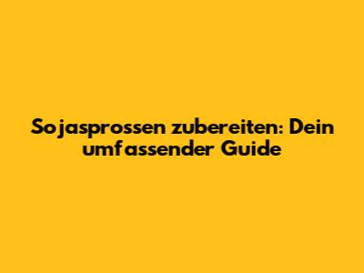 Sojasprossen Zubereiten: Der Ultimative Guide