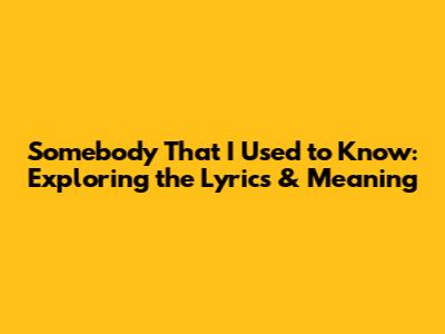 Hey guys! Ever heard a song that just hits different? Like, it gets stuck in your head for days and you can't help but analyze every single lyric? Well, for me, that song is "Somebody That I Used to Know." It's a track that's been around for a while, but it still sparks so much conversation and introspection. Today, we're diving deep into this iconic song, exploring its meaning, the story behind it, and why it resonates with so many people. So, grab your headphones, maybe a cup of coffee, and let's get started!