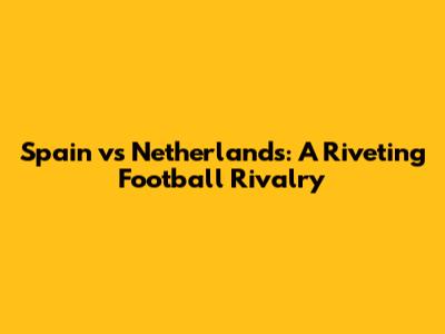 Spain Vs Netherlands: A Riveting Football Rivalry