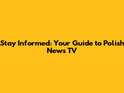 Stay Informed: Your Guide To Polish News TV