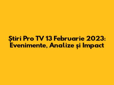 Știri Pro TV 13 Februarie 2023: Evenimente, Analize Și Impact