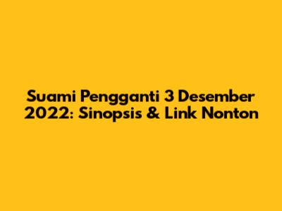 Hey guys! Buat kalian para penggemar setia sinetron Suami Pengganti, pasti udah nggak sabar dong nungguin episode terbaru tanggal 3 Desember 2022? Mimin juga sama! Sinetron yang satu ini memang selalu berhasil bikin kita gregetan, gemas, sedih, sampai ketawa bareng karakter-karakternya. Nah, buat kalian yang ketinggalan atau pengen flashback sedikit, yuk kita bahas sinopsis Suami Pengganti 3 Desember 2022 yang pastinya seru abis!
