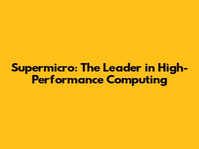 Supermicro: The Leader In High-Performance Computing