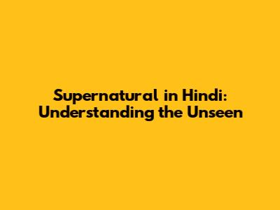 Supernatural In Hindi: Understanding The Unseen
