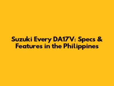 Suzuki Every DA17V: Specs & Features In The Philippines