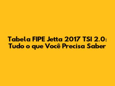 Tabela FIPE Jetta 2017 TSI 2.0: Se você está considerando comprar ou vender um Jetta 2017 TSI 2.0, ou simplesmente é um entusiasta automotivo curioso, este guia é para você! A Tabela FIPE (Fundação Instituto de Pesquisas Econômicas) é a sua principal ferramenta para entender os preços de mercado dos veículos no Brasil. Neste artigo, vamos mergulhar nos detalhes da tabela FIPE do Jetta 2017 TSI 2.0, explorando como ela funciona, por que é importante e como você pode usá-la para tomar decisões inteligentes sobre seu carro. Prepare-se para uma análise completa e informações valiosas que irão te ajudar a navegar no universo dos preços automotivos.