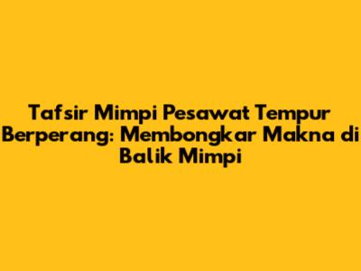 Perang dalam mimpi, di sisi lain, sering kali mengindikasikan adanya konflik, perselisihan, atau tantangan yang sedang atau akan dihadapi dalam kehidupan nyata. Ini bisa berupa konflik internal, seperti pergumulan batin, atau konflik eksternal, seperti masalah dalam hubungan, pekerjaan, atau lingkungan sosial. Perang juga bisa melambangkan perubahan besar, transformasi, atau perjuangan untuk mengatasi kesulitan. Jadi, kombinasi pesawat tempur dan perang dalam mimpi bisa menjadi indikasi adanya konfrontasi atau tantangan yang memerlukan kekuatan, keberanian, dan strategi untuk menghadapinya.