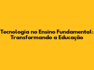 Tecnologia No Ensino Fundamental: Transformando A Educação