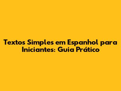 Textos Simples Em Espanhol Para Iniciantes: Guia Prático