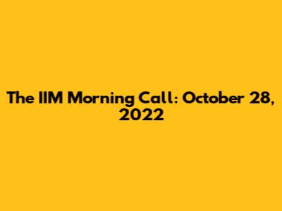 The IIM Morning Call: October 28, 2022
