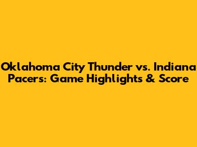 Thunder Vs. Pacers: Game Highlights & Score
