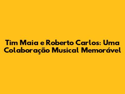 Tim Maia E Roberto Carlos: Parceria Musical Inesquecível