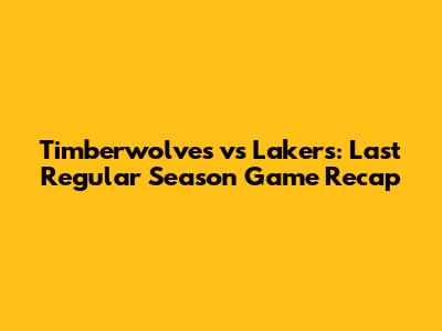 Timberwolves Vs Lakers: Last Regular Season Game Recap