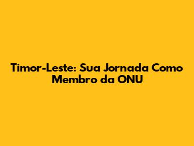Timor-Leste: Sua Jornada Como Membro Da ONU