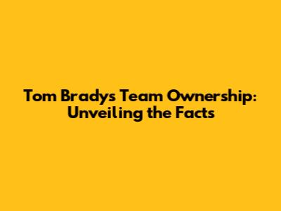 Tom Brady's Team Ownership: What's The Deal?