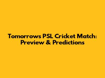 Tomorrow's PSL Cricket Match: Preview & Predictions