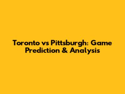 Toronto Vs Pittsburgh: Game Prediction & Analysis
