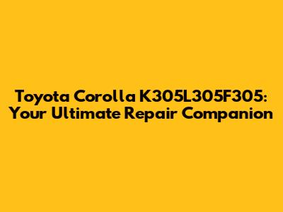 Toyota Corolla K305L305F305: A Comprehensive Repair Guide