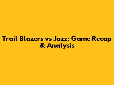 Trail Blazers Vs Jazz: Game Recap & Analysis