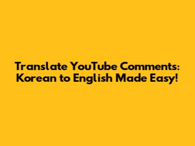Translate YouTube Comments: Korean To English Made Easy!
