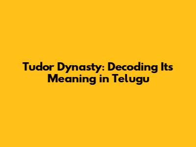 Tudor Dynasty: Decoding Its Meaning In Telugu