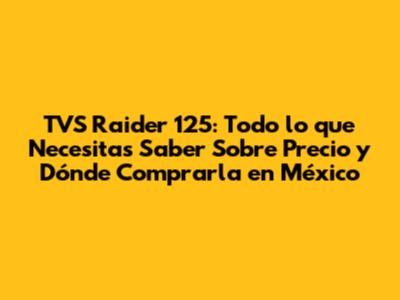 ¿Cuánto Cuesta la TVS Raider 125 en México? Analizando el Precio