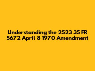 We're going to break down what this amendment likely covered, its potential impact back in 1970, and more importantly, whether it still has any relevance today. We'll explore the context of the era, the kinds of issues that might have prompted such an amendment, and how to go about finding the full text if you need to dive even deeper. So, grab a coffee, settle in, and let's unravel the mystery of Amendment 2523 35 FR 5672 together. It’s a journey into the past that might just illuminate the present!