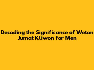 Alright guys, let's dive into something super interesting – the world of Weton, specifically focusing on Jumat Kliwon for men! If you're scratching your head wondering what Weton is, don't worry, we'll break it down. Weton is essentially a Javanese calendar system that combines your day of birth on the Gregorian calendar with the day of the week, resulting in a unique combination of days. Think of it like a personalized astrological profile, but with a cultural twist. Jumat Kliwon, for those born on a Friday Kliwon, is considered a significant Weton because Friday (Jumat) is a holy day in Islam, and Kliwon is the name of the five-day market week (Pasaran). These two days, when combined, are believed to have a unique blend of spiritual and mystical energy. This combination can influence various aspects of life, including personality traits, destiny, and even compatibility with others. It's a fascinating concept that has been passed down through generations in Javanese culture, offering insights into the self and the world around you. So, let's explore this further and uncover the mysteries behind Weton Jumat Kliwon for men!