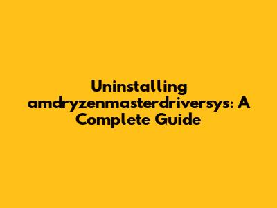 Uninstall Amdryzenmasterdriversys: A Complete Guide