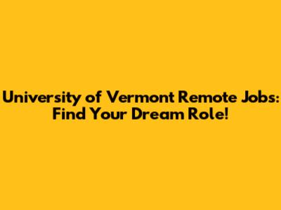 University Of Vermont Remote Jobs: Find Your Dream Role!