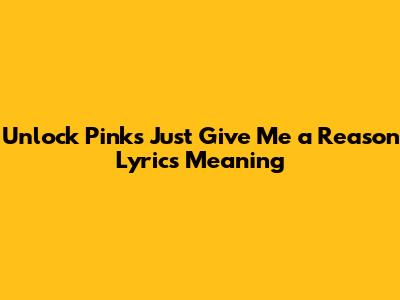 Unlock Pink's 'Just Give Me A Reason' Lyrics Meaning