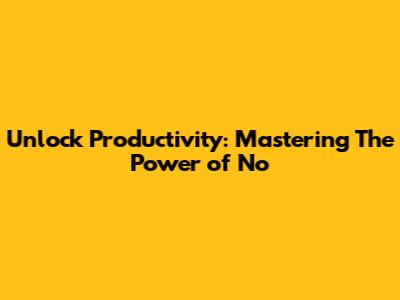 Unlock Productivity: Mastering The Power Of 'No'