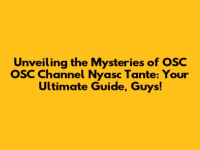 Unlock The Secrets Of OSC OSC Channel Nyasc Tante