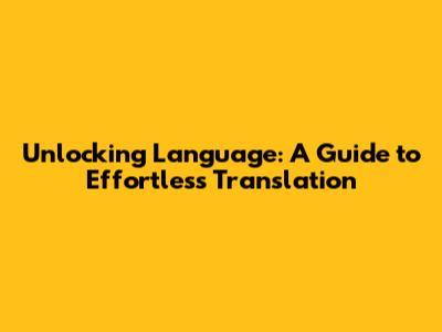 Unlocking Language: A Guide To Effortless Translation