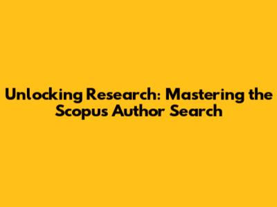 Unlocking Research: Mastering The Scopus Author Search