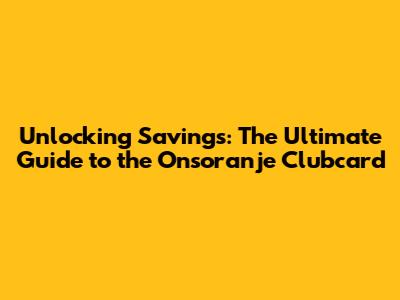 Unlocking Savings: The Ultimate Guide To The Onsoranje Clubcard