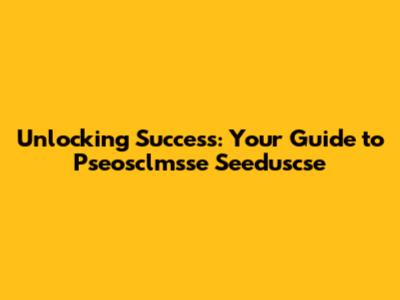 Unlocking Success: Your Guide To Pseosclmsse Seeduscse