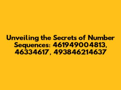 Hey everyone, let's dive into something a little different today! We're gonna crack the code on some seemingly random numbers: 461949004813, 46334617, and 493846214637. Now, I know what you're thinking – "Numbers? Yawn!" But trust me, these aren't just any numbers. There's a story here, a hidden pattern, and the potential for some seriously cool insights. In this article, we'll explore possible meanings, look at different interpretations, and maybe, just maybe, uncover what makes these sequences tick. Get ready to put on your detective hats, because we're about to go on a numerical adventure!
