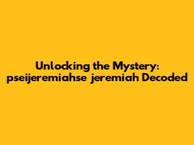 Unlocking The Mystery: Pseijeremiahse Jeremiah Decoded