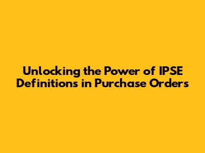 Unlocking The Power Of IPSE Definitions In Purchase Orders