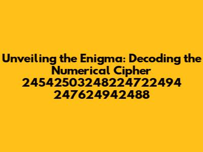 Alright, folks, let's dive headfirst into a real head-scratcher! We've got this string of numbers – 24542503248224722494 247624942488 – staring us in the face. It looks like something out of a spy movie, right? Well, that's exactly what we're going to tackle today. Our mission? To crack the code and figure out what in the world this numerical sequence actually means. We're not just going to toss out random guesses; instead, we are going to walk through a systematic breakdown of this number sequence. This article isn’t just about looking at a bunch of numbers; it's about understanding the underlying message they might be trying to convey. We're going to explore all possible avenues, from simple patterns to the most complex of encryption techniques. We're going to turn ourselves into digital detectives, so buckle up, because this is going to be a wild ride! We will use every trick in the book – from number theory to pattern recognition – to try and decipher this mystery. You'll be amazed at the number of hidden possibilities there are just waiting to be uncovered, and you may even find that you learn something new along the way. So, if you're ready to put your thinking caps on, let's get started. By the end of this journey, you should have a solid grasp of not only what the sequence might represent, but also a deeper appreciation for the art of decoding.