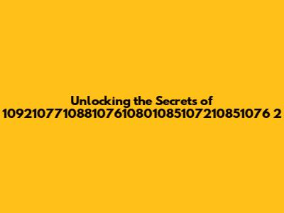 Unlocking The Secrets Of 109210771088107610801085107210851076 2