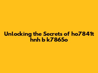Unlocking The Secrets Of Ho7841t Hnh B K7865o