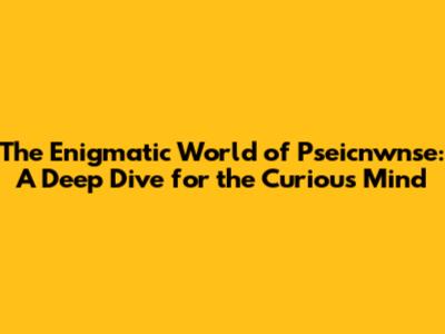 The Enigmatic World of Pseicnwnse: A Deep Dive for the Curious Mind